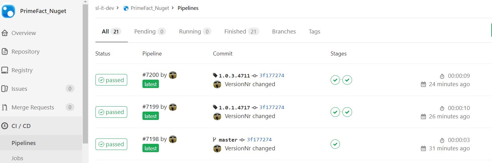 Als erstes habe ich ein Repository im git angelegt, welches den Namen der Software hat und PrimeFact_Nuget heißt. Hier habe ich den gesamten Sourcecode drin, der dafür sorgt, das ein korrektes nuget entsteht.